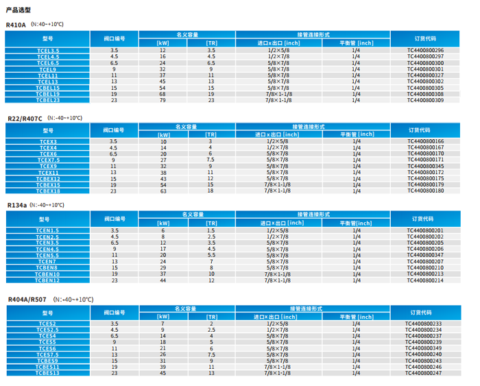 1.适用制冷剂R410A、R22、R134a、R404A、R507、R290、R407C等