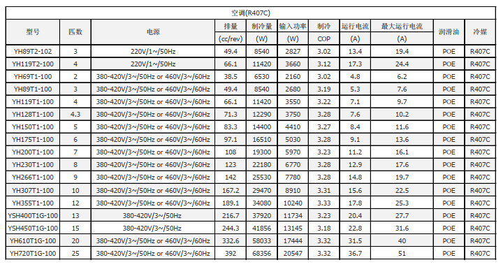 YH/YSH系列空调冷水机组专用涡旋压缩机