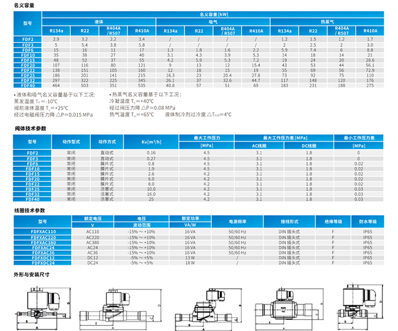 专用O型圈,兼容性好,使用寿命长;采用高纯度PTFE密封材料,密封性能好;开阀能力强,最大工作压力差大;多种交流和直流电磁线圈的宽泛选择.
