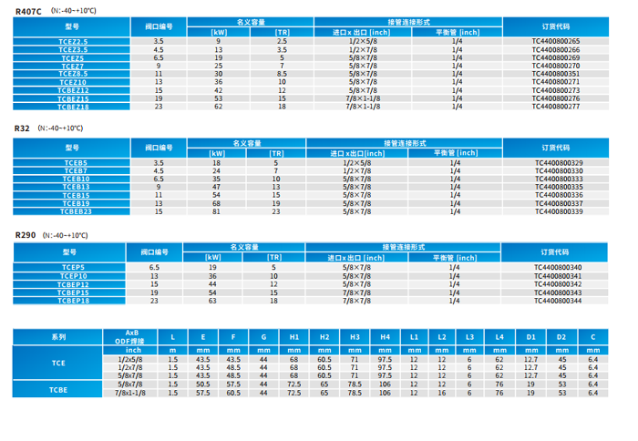 1.适用制冷剂R410A、R22、R134a、R404A、R507、R290、R407C等