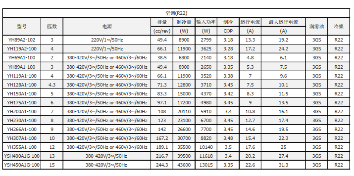 YH/YSH系列空调冷水机组专用涡旋压缩机